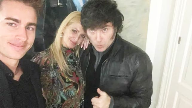 Yuyito González, su hijo Stefano y Javier Milei, en familia. “Noche de viernes en Olivos, cena familiar con mi hijo Toto Di Aloy y mi novio Javier Milei”