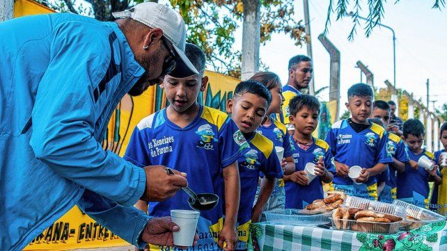 En este caso es el escudo de Boca, pero cualquiera que represente a un equipo grande ayuda a este tipo de acciones. “Esto va más allá de los colores es una ayuda en general. La idea es más que nada trabajar para los chicos y nosotros teneos la posibilidad de ayudar un poco más con los colores de Boca. Ese es el trabajo que hacemos. Nosotros en la comisión de los Xeneizes de Paraná somos 15 personas y nos movemos para todos lados. Unos encargan las facturas, otros preparan la leche y vamos ayudando entre todos. Se consiguen los peluqueros que de buena onda, porque no todos son de boca, vienen y ayudan. Está bueno que eso pase”.