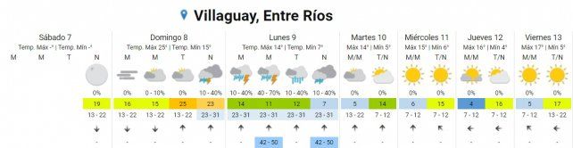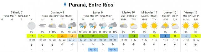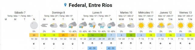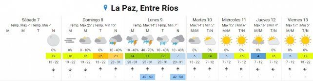 Actualmente bajo el dominio de una masa de cálida para la época del años, se espera que sea rápidamente desalojada por aire frío que ingresa en la región desde el sur, con tormentas fuertes asociadas, especialmente en la tarde del domingo. El fenómeno acarreará descenso de temperaturas y puede provocar sudestada, viento y temperaturas máximas por debajo de lo experimentado en la semana que termina.