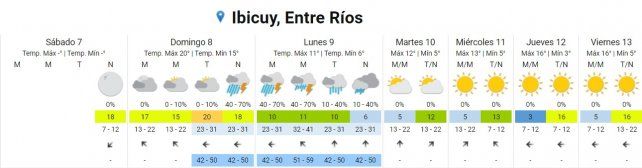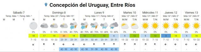 En Entre Ríos afectará a Colón - Gualeguaychú - Islas del Ibicuy - Tala y Concepción del Uruguay en la noche del domingo y la madrugada del lunes