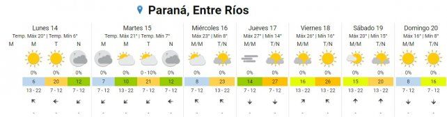 El Clima y el Pronóstico extendido para Paraná, Entre Ríos.