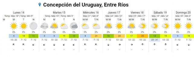 Para lo que resta del día el Servicio Meteorológico Nacional (SMN) indica despejado y cielo parcialmente nublado, con temperaturas promedio de entre 6º C, la mínima, y 20º C la máxima.