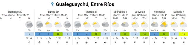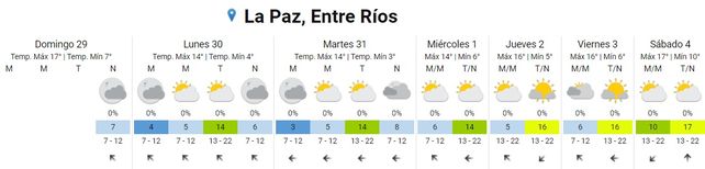 Ingresó una masa de aire frío a la región. El pronóstico extendido del SMN para esta semana