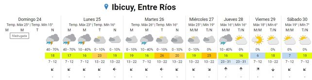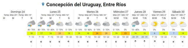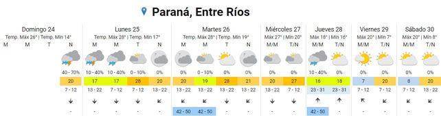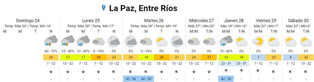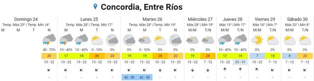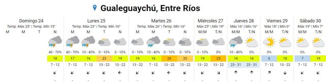 La semana inicia con tormentas aisladas en varios puntos de la provincia de Entre Ríos, según el pronostico extendido del Servicio Meteorológico Nacional (SMN) que prevé para los próximos cuatro días humedad y temperaturas templadas.