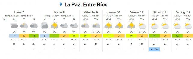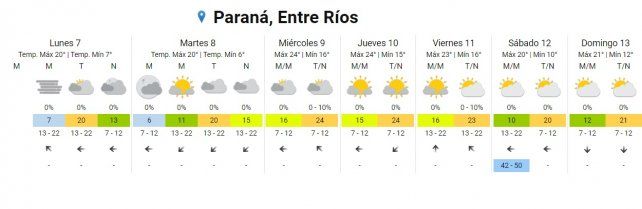 El pronóstico extendido del SMN para Entre Ríos