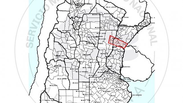 En tanto en la provincia de Santa Fe abarca General Obligado, San Javier y Vera. La provincia de Corrientes podría verse afectada en jurisdicciones de Curuzú Cuatiá, Esquina, Goya, Mercedes, Monte Caseros, Paso de los Libres y Sauce.