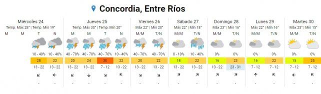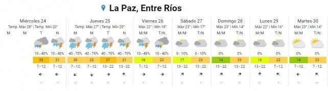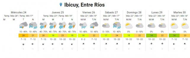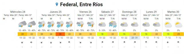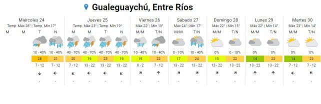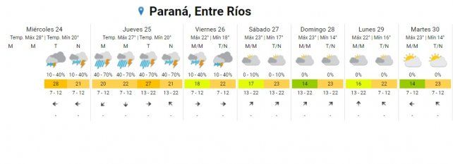 Las posibilidades de lluvias, según el Servicio Meteorológico Nacional (SMN), en Entre Ríos serían de hasta el 40% en horas de la mañana y el resto de la jornada donde llegarían chaparrones y tormentas aisladas.