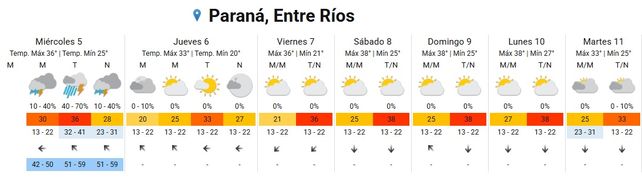 Los departamentos Victoria, Gualeguay, Gualeguaychú, Tala, Uruguay, Colon e Islas del Ibicuy serán afectados por fenómenos meteorológicos que estarán acompañadas por ráfagas que podrían alcanzar los 75 km/h, granizo, fuerte actividad eléctrica, y especialmente abundante caída de agua en cortos períodos.