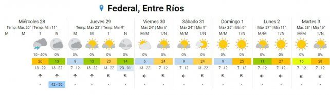Con el avance de un frente frío sobre la región, se prevé un aumento gradual en la intensidad de los vientos del sector sur, alcanzando velocidades entre 40 y 60 km/h, con ráfagas, afectando progresivamente la zona de sur a norte.