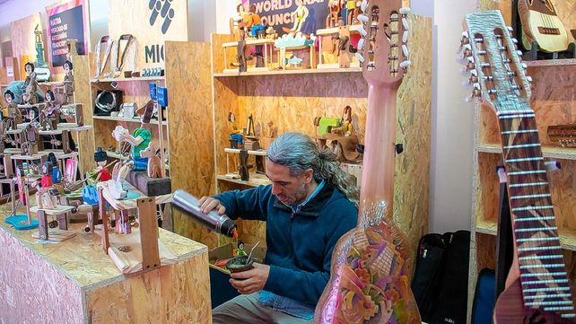 Mates de madera, de asta, forrados en cuero y alpaca, artesanales todos. Mates labrados en porongos. Cuchillos artesanales, uno a uno. Guascas, platería, lana, hilados… Ah, y qué decir de esa maravilla llamada ñandutí, y de esa otra exquisitez llamada luthería que hace historia en Gualeguay, por caso.