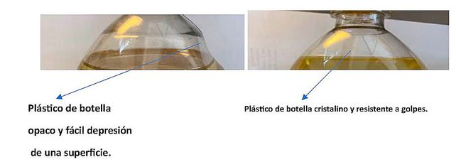 Por último, la botella original es cristalina y resistente a los golpes, mientras que el plástico del envase falsificado es opaco y de fácil depresión en una superficie.