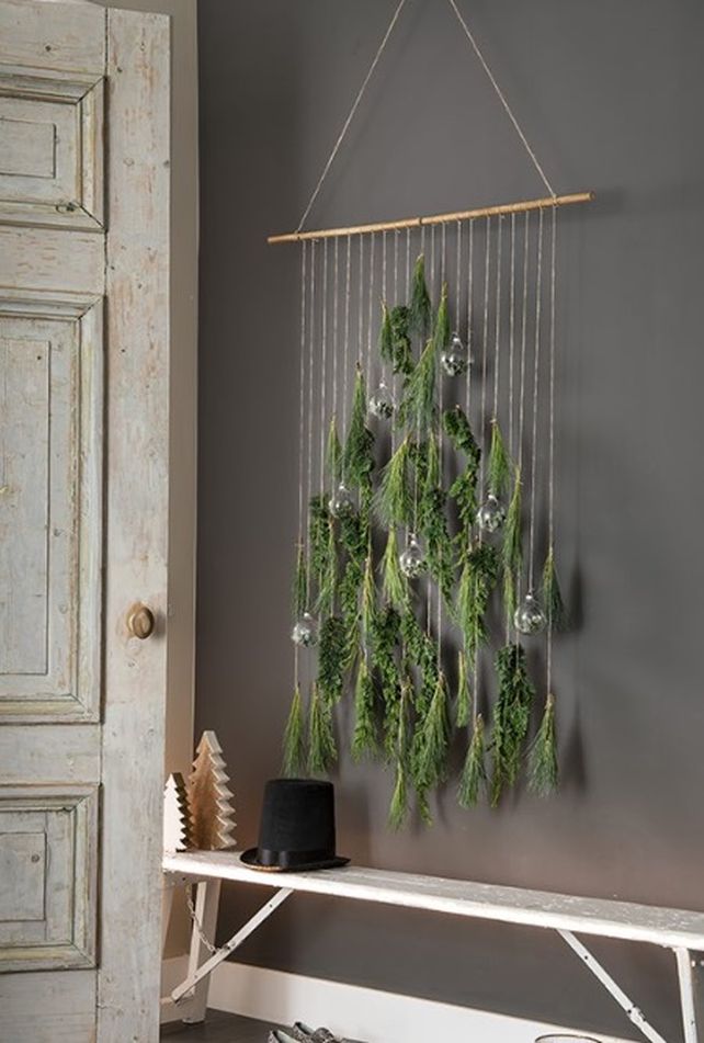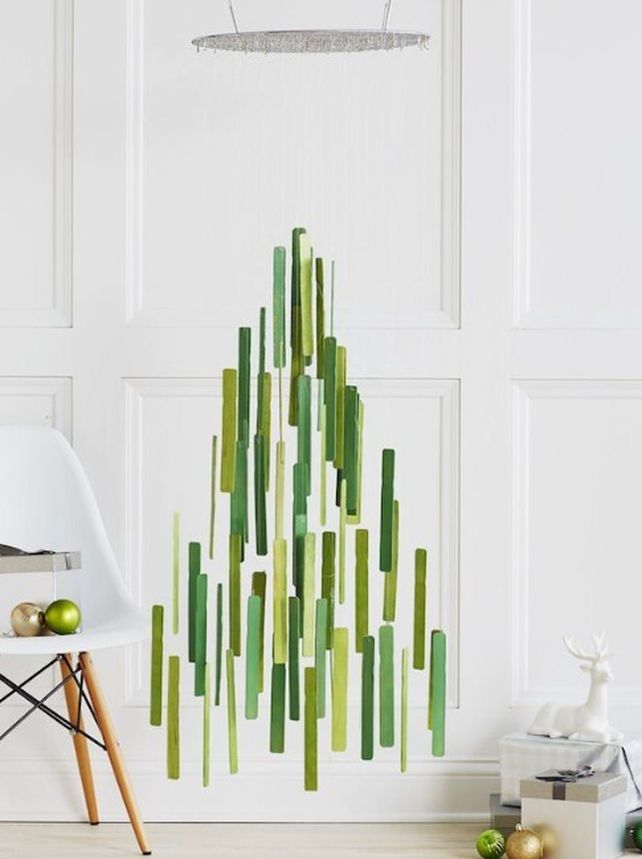 Solo con tubos de distintos tamaños se puede componer sobre la pared un hermoso árbol adornado. Un trabajo creativo con el que se puede vestir cualquier pared de la casa.