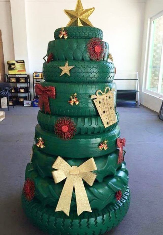 Un Árbol de Navidad se puede simbolizar con los más variados elementos. Muchos árboles están hechos de botellas plásticas o de vidrio. Se pueden armar con fideos y hasta con neumáticos.