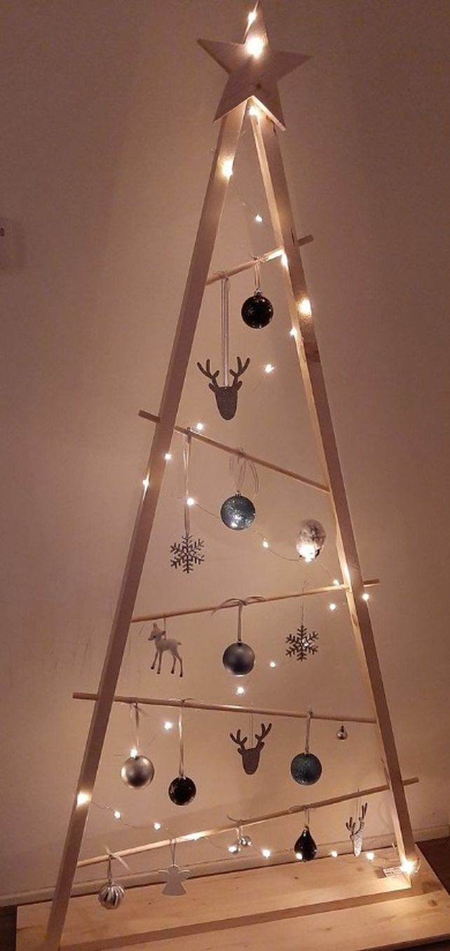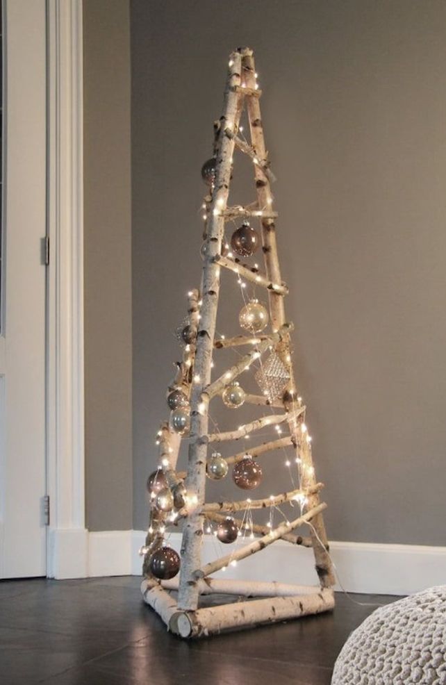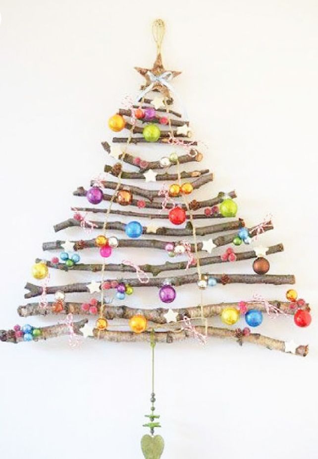 Haciendo un esqueleto sencillo con la forma triangular se puede crear una base para enredar luces y adornos de lo más variado.