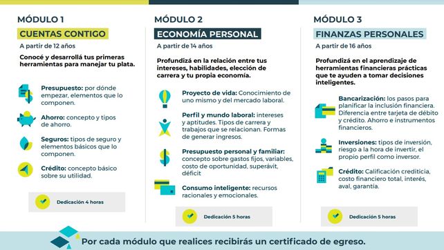 Adolescentes de entre 12 y 18 años de todo el país podrán capacitarse en forma gratuita y online para desarrollar habilidades sobre economía personal y profundizar en la importancia del ahorro, la planificación, el crédito y los criterios de compra inteligente.