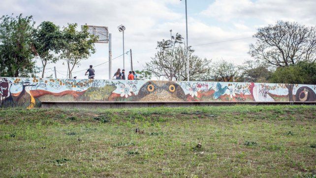 Detrás del campo de juego hay un mural extenso y colorido con flores y pájaros. Lo pintaron vecinas, algunas artistas. “Hago teatro”, se presenta una. Cuenta que la pintura embelleció, reavivó el espacio y atrajo a vecinos de la zona. Ahora cada tanto se hacen ferias de emprendimientos. “Este lugar es bellísimo. Estás rodeado de naturaleza, hay espacios amplios y tenés cerca el río. Bajás caminando por cualquier calle y llegás”, valora.