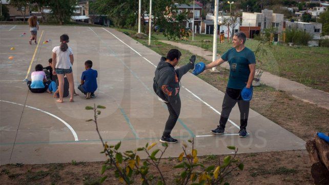 Enseña básquet los lunes, miércoles y viernes de tarde a tres grupos de vecinitos que van desde los seis a los 17 años. Además, en un rincón de la cancha un profesor de taekwondo da una clase, menos concurrida pero con alumnitos igual de comprometidos.