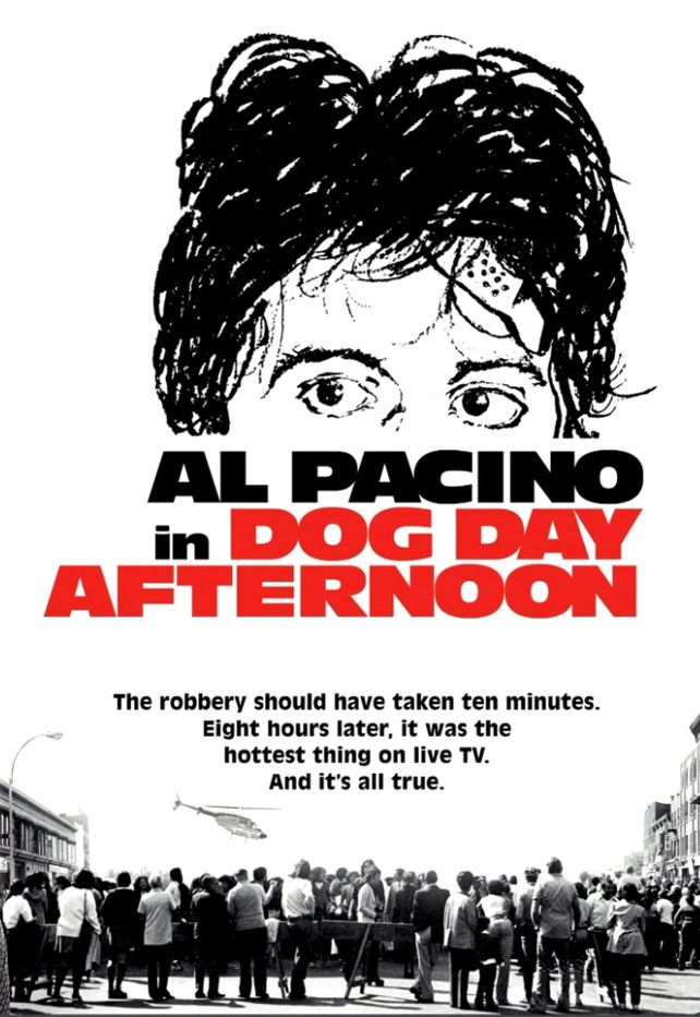 En inglés "Dog Day Afternoon" esta película estadounidense de 1975, fue dirigida por Sidney Lumet, escrita por Frank Pierson y protagonizada por Al Pacino, John Cazale, Chris Sarandon y Charles Durning, basada en un hecho real ocurrido tres años antes.