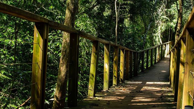 Senderos en la selva, panorámicas del salto desde miradores. El Salto Encantado, en Misiones, es ideal para pasar el día, acampar y observador aves
