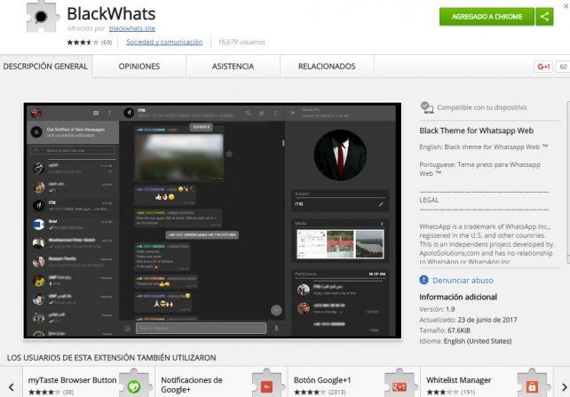 Para activar esta opción hay que buscar la extensión BlackWhats de Chrome dentro de Chrome Store.