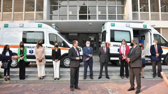 Durante una ceremonia efectuada hoy en la explanada de los Tribunales de Paraná, el Superior Tribunal de Justicia de Entre Ríos (STJ) entregó al gobierno provincial dos nuevas ambulancias adquiridas con lo recaudado por el Fondo Solidario, creado por el alto cuerpo como contribución para afrontar la emergencia sanitaria con motivo del Covid-19. El acto fue encabezado por el presidente del STJER, Martín Carbonell y el gobernador Gustavo Bordet.