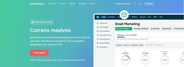 SendPulse destaca especialmente por su servicio de email marketing profesional, pensado para empresas que necesitan enviar correos de forma confiable, automatizada y con buena entregabilidad desde el primer día. La plataforma permite crear campañas, newsletters y secuencias automáticas sin depender de configuraciones técnicas complejas.