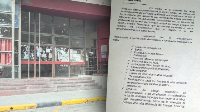 A partir de este martes los trabajadores del Centro Emisor de Licencia de Conducir de Paraná comenzaron un estado de asamblea con retención de servicios de tres horas por día, de 10 a 13, "por no recibir respuestas a un conjunto de problemáticas que tienen en el área", informaron desde el Sindicato Único de Obreros y Empleados Municipales (SUOYEM).