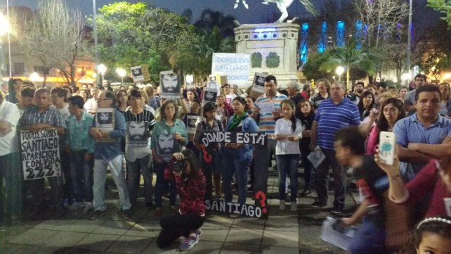 Cerca de las 19 la muchedumbre comenzó a agruparse en la intersección de Urquiza y Corrientes, desde donde partió la marcha hacia la delegación local de Gendarmería. Fueron varias cuadras de una de las convocatorias más nutridas que se haya visto, porque agrupó a varios sectores de diferentes signos políticos, frente a un caso que sigue conmoviendo a toda la sociedad argentina. En el trayecto no faltaron el repique de tambores ni los cánticos a viva voz por la aparición de Santiago, mientras los más rezagados se sumaban a último momento.