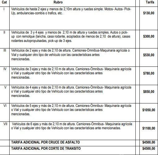 Vale recordar que el último aumento había sido en julio pasado, cuando se llevó la tarifa de 90 a 100 pesos. Y el anterior había sido en febrero de 2021. Por lo tanto, en 11 meses, la tarifa para autos y motos tuvo un incremento de 100%.