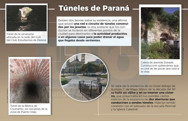 Julio Ruberto habla con pasión y entusiasmo de los túneles sepultados debajo de la geografía urbana paranaense. El lugar elegido para la entrevista es la plaza Sáenz Peña, un paseo que guarda anécdotas de los viejos conductos y que reivindica la figura de Miguel Ángel Mernes. “Fue el que puso sobre el tapete a los túneles. Resulta que en la revolución del 55, él estaba haciendo el servicio militar en los cuarteles del Ejército y vino con oficiales y suboficiales hasta la plaza Sáenz Peña, a través de los túneles. Cuando llegan acá los toman prisioneros porque el gobierno de la Revolución había triunfado; ellos se suponía que eran fieles al Gobierno. Quedó como la anécdota, pero te da la pauta del tramo de túneles que recorrieron: desde los Cuarteles, lo que hoy es el hospital Militar hasta la plaza Sáenz Peña”, graficó el profesor y titular de la ONG Rescate de la Historia.