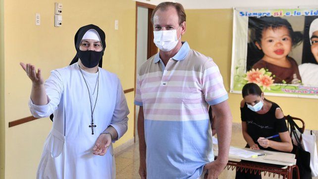 El gobernador Gustavo Bordet estuvo presente, este sábado, en la aplicación de vacunas contra el Covid-19 a docentes del hogar Don Uva de Paraná acompañado por la ministra de Salud, Sonia Velázquez, y el presidente del Consejo General de Educación (CGE), Martín Müller. “El hecho de poder ir ampliando el universo de personas que se vacunan, da tranquilidad, pero debemos seguir manteniendo todos los cuidados individuales y respetar los protocolos”, expresó, tras tomar contacto con docentes y personal auxiliar no docente de escuelas de enseñanza especial que comenzaron a vacunarse en Hogar Don Uva, de Paraná.