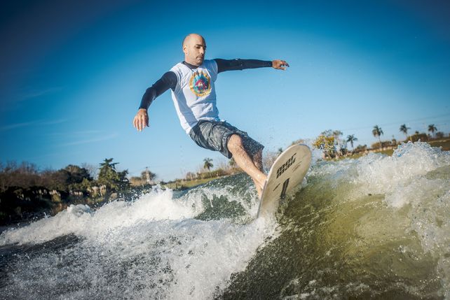 “El evento se hizo en Lagos del Rocío, en Pilar y lo hizo Matías Divirgilis quién es uno de los referentes del wakesurf, que es surf tirado por la ola que produce la lancha. Simula ser una ola natural de mar y que contiene la misma inercia para que el surfer pueda ir deslizándose sin ir prendido de un manillar. Es la tabla y uno arriba nada más. Este deporte surge a raíz de las lanchas de wakeboard y la mayoría de los wakeborders arrancaron con este deporte porque las lanchas son aptas para hacerlo”, sostuvo y continuó: “Esto surge de una fusión entre el wakeboard y el surf y se utilizan maniobras del waakeskate. Siempre terminan estando todos emparentados. Por ejemplo el wakesurf tiene dos disciplinas. Una que se llama surf y la otra sky. El surf es lo más parecido a surfear en el mar, como se ve en las competencias, y el sky es más similar al wakeskaate con las maniobras naturales del skate que uno hace en la calle. Esas son las diferencias”.