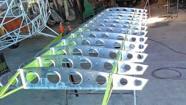 El proceso de construcción se inició hace cuatro años atrás con el fuselaje del avión, la estructura principal. “Está construida de tubos de acero cromolideno, es una estructura reticulada. Va todo soldado. Una vez terminado el fuselaje construí las alas con una aleación aeronáutica y tras el ensamblaje recibí la primera inspección de la Administración Nacional de Aviación Civil (Anac), que es la autoridad que va realizando todo un proceso de auditoría de la construcción. Me autorizaron a seguir construyendo y entonces vino otra etapa en que toda esa estructura del fuselaje y las alas fueron recubiertas con una tela especial de uso aeronáutico. Esa tela lleva un proceso de pintura especial y luego una pintura arriba que es la que le da el color. Toda la construcción me llevó cuatro años, trabajando sábados y domingos, en mis vacaciones y cualquier tiempo libre que me quedaba después del trabajo del taller”, contó.