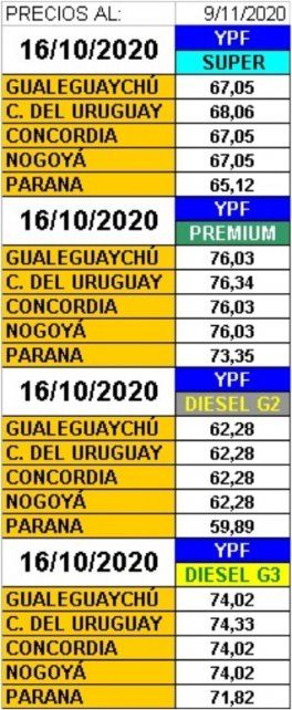 YPF aplicó un nuevo incremento en los precios de los combustibles en otro grupo de localidades del interior del país, pero sin incluir las capitales provinciales. En este caso le correspondió a algunas localidades del interior de la provincia de Entre Ríos.